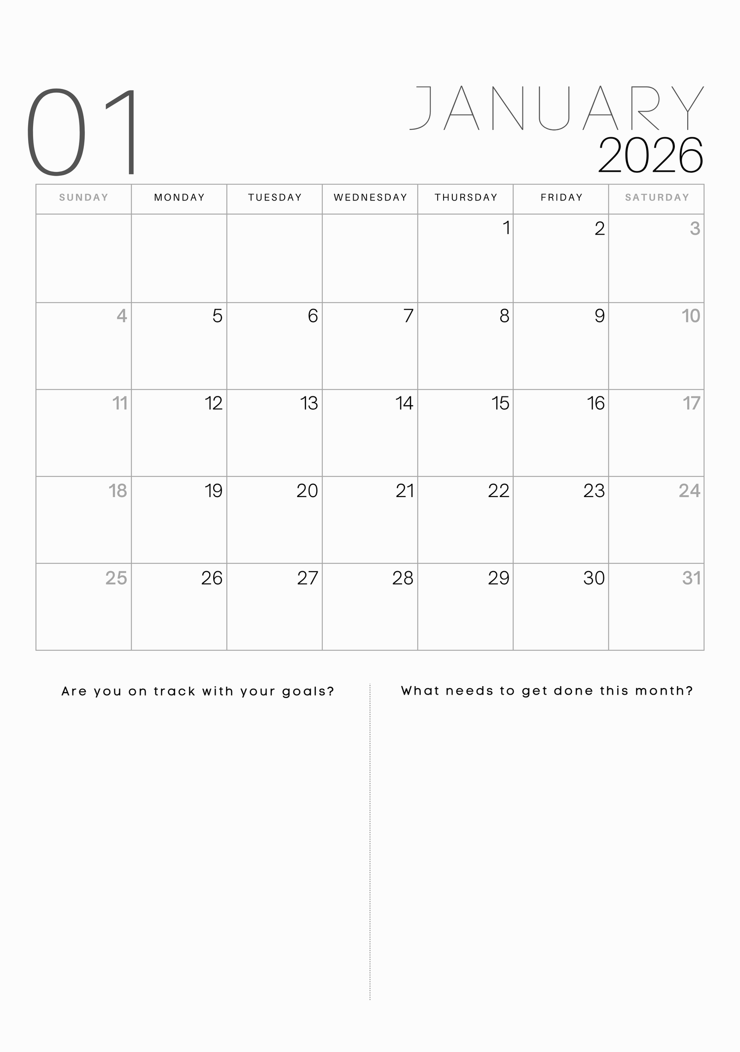 Breaking your big goals down into smaller pieces can do wonders for achieving them. So in 2026 we have added a Monthly calendar with a goal check in section to help you organize your year even more.